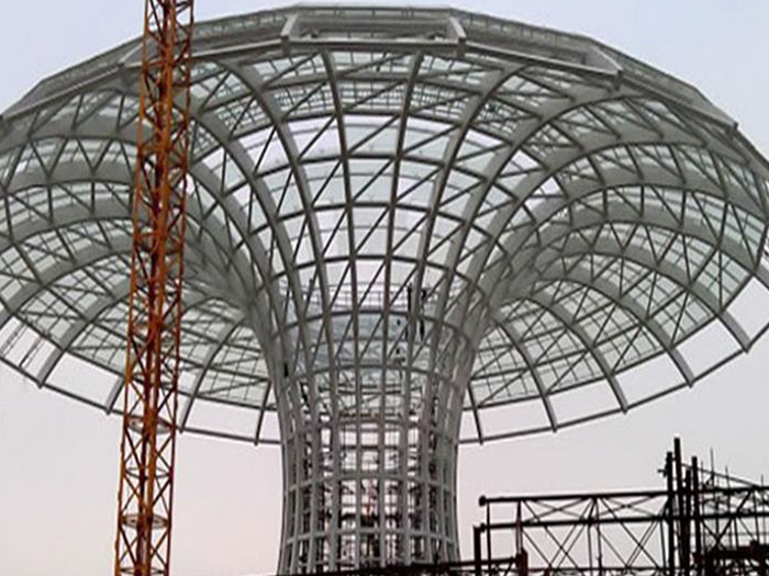 二、球形网架结构因其结构新颖,受力合理,自重轻、用钢量低等优点。如大型体育场馆球形昌都螺栓球网架、公共场馆球形网架、电厂昌都螺栓球网架、水泥工业球形网架、仓储物流球形网架、昌都干煤棚工业球形网架、昌都收费站昌都加油站球形网架、展览中心、影剧院、商场、航站楼、候车厅、工厂昌都车间、仓库、电视塔等球形螺栓球节点网架。国内球形网架结构主要分为:昌都焊接球节点网架及螺栓球节点网架两种。螺栓球节点网架其构件工厂内加工量较大,现场安装便捷,适用于现场工期紧,昌都施工条件、用电量受制约,网架形状复杂、昌都杆件定位困难的异形结构。螺栓球节点球形网架系统基本由昌都杆件、螺栓球、支撑支座等组成。按照节点形式可分为交叉昌都桁架体系、四角锥体系、三角锥体系等。支撑方式多为固定支座支撑。对于大面积、大跨度及有特殊受力或伸缩要求的网架结构可采用橡胶支座、滑移支座、球铰支座等支撑形式,以满足结构自身的受力稳定、均衡,便于内力释放等设计要求。
